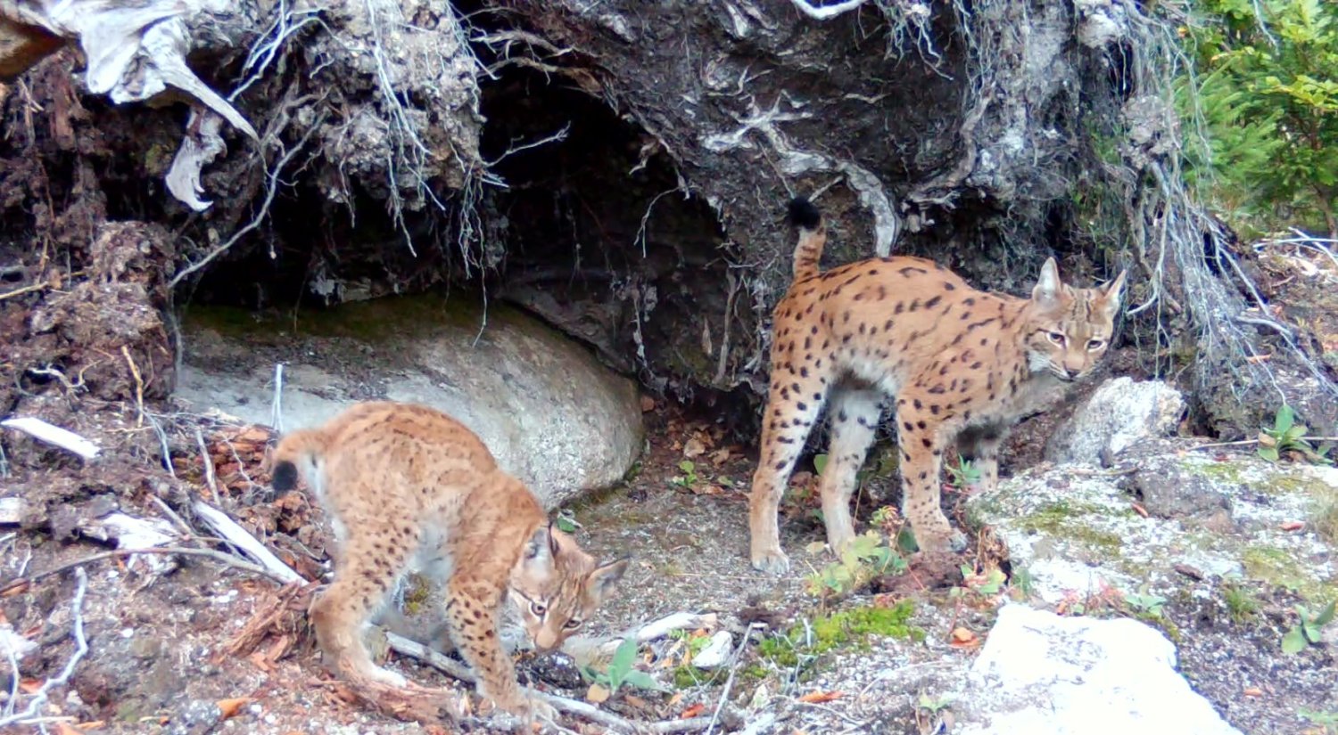 From the outset, Chapo, a male lynx from Nuremberg Zoo who was also released into the wild in 2024, was considered a possible father. At the end of the mating season, in early April 2025, so-called point locations transmitted by GPS collar transmitters revealed that both lynxes had spent three days together in Alva's territory. This was a very late date for a meeting, as the mating season for lynxes only lasts until April. Due to the young age of the male lynx, which was only two years old at the time of mating, it was not initially possible to assume with certainty that reproduction had been successful. Male lynxes usually reach sexual maturity at the age of three, while female lynxes reach it at the age of two.